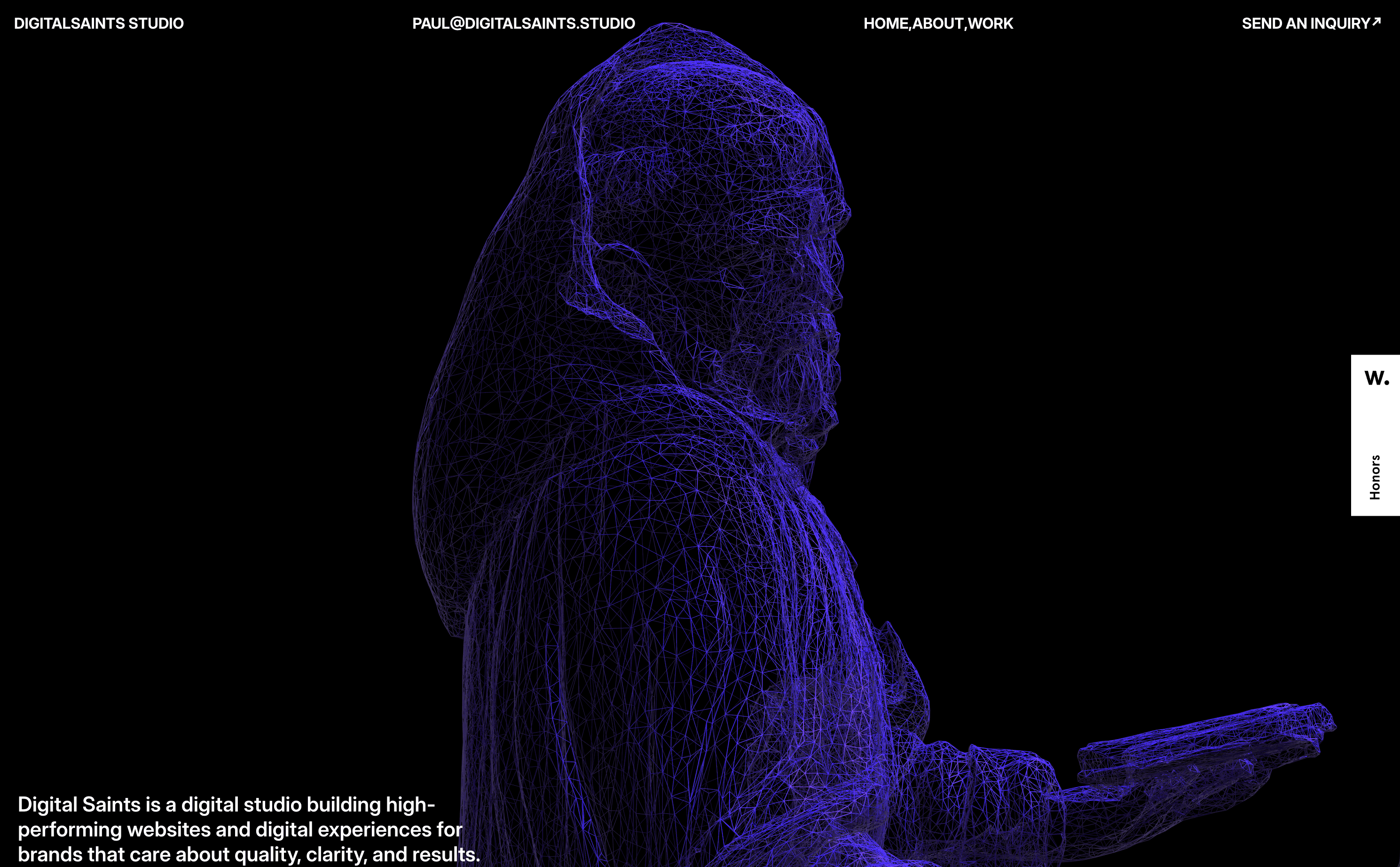 The catch was the website's theme: complex computing networks, AI workflows, smart technology. Flat 2D illustration wasn't going to do that justice. I kept coming back to Digital Saints Studio as a reference point. They do something really effective where a 3D object transforms, mostly rotates, as you move section by section, letting the object itself carry the narrative. That was exactly the kind of storytelling I was after.